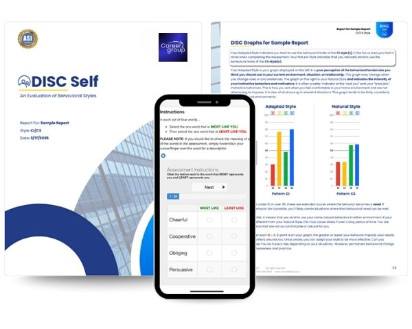 At Careerz Group, the DISC Assessment™ helps you decode how you naturally show up at work: how you communicate, make decisions, and collaborate. The result is less friction, clearer strengths, and confident growth. You’ll receive a clear profile with practical next steps you can use right away.