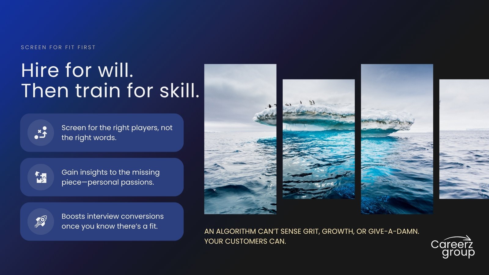 Careerz Group equips HR leaders with assessment tools to align employee personal values with company roles, providing actionable insights that drive smarter decisions. From in-depth assessments to team building workshops to scalable employee development and coaching programs, our solutions deliver measurable improvements in engagement, retention, and ROI.